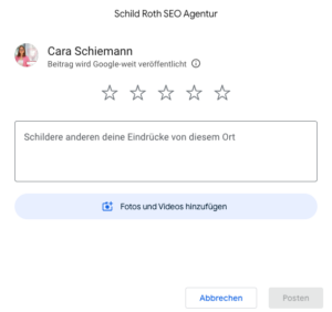 Klicken Sie auf „Posten“ oder „Veröffentlichen“. Ihre Bewertung wird nun geprüft und ist in der Regel sofort oder nach kurzer Zeit öffentlich sichtbar.
