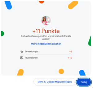 In der Regel ist eine Bewertung sofort sichtbar. In Einzelfällen kann Google die Bewertung prüfen, was 1–3 Tage dauern kann.
