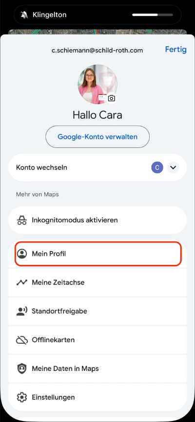 - Klicken Sie auf das „Menü“ (die drei horizontalen Linien oben links) oder Ihr Profilbild.