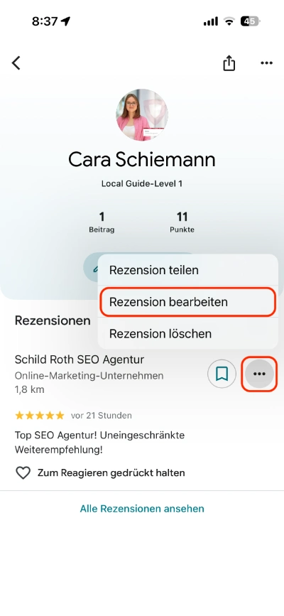 Kurzfassung: Meine Google-Rezension bearbeiten